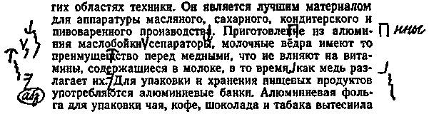 Полученный оттиск передают в корректорскую. Корректоры внимательно читают текст, сверяя его с оригиналом. На широких полях бумаги рядом с текстом они делают условными знаками необходимые пометки (рис. 12). После этого оттиск возвращается в наборный цех.