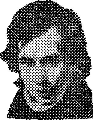 На рис. 17 показан увеличенный в пять раз оттиск с клише, изготовленного с применением такой сетки. Отодвиньте от себя книжку подальше, и вы увидите чёткое изображение лица; вблизи оно выглядит, как беспорядочное скопление чёрных и белых точек разных размеров. Лоб и правая щека кажутся нам белыми потому, что чёрные точки очень малы, а расстояния между ними велики. На левой щеке видны уже более крупные чёрные точки. Промежутки между ними меньше прежних. Эти участки оттиска кажутся нам более тёмными; они соответствуют серым тонам оригинала, теням. А волосы выглядят чёрными потому, что здесь точки самого крупного размера и в наш глаз почти не попадают белые лучи от промежутков между ними. Если немного изменить соотношение чёрного и белого цветов (как это сделано в волосах на правой стороне портрета), то вы увидите блик — освещённую прядь волос.