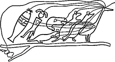 «Прочесть» такое письмо не так просто. Содержание приведённого послания следующее. Индейцы просят разрешения переменить место жительства. Передать просьбу они уполномочили вождя журавлиного племени. Фигуры зверей и птиц изображают названия племён. Впереди — их представитель. Линии, соединяющие головы и сердца шести фигур с головой и сердцем журавля, — это знак единомыслия всех племён. Линия, направленная от головы журавля вперёд, — знак обращения к президенту. Линия от головы назад показывает, куда, к каким озёрам племена хотели бы переселиться.