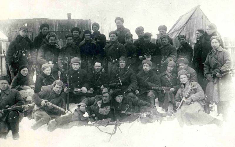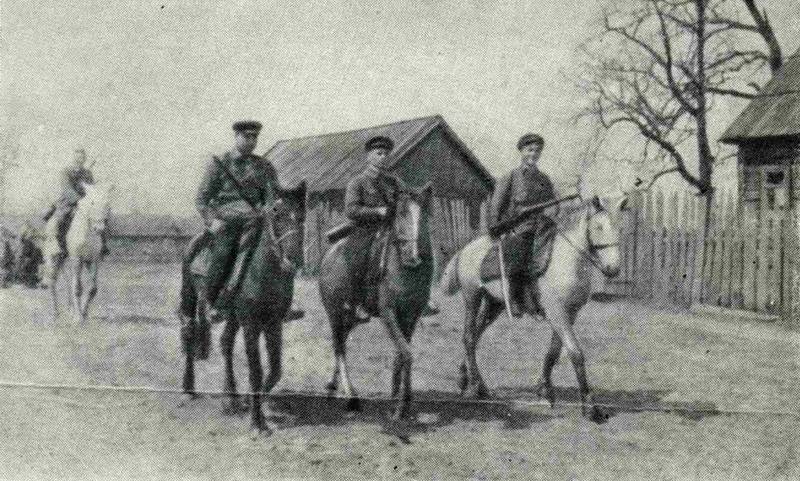 На марше: комиссар отряда им. Ф. Стрельца Бойков, командир отряда Чапов, зам. командира объединенных отрядов Миршин.