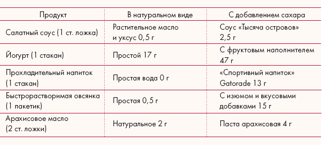 • Не позволяйте себя обмануть. Будьте осторожны с продуктами, в которых скрывается сахар. Если они несладкие на вкус, это еще не означает, что в них не добавлен кукурузный сироп или другие сахара. Вот примеры таких «обманщиков»: