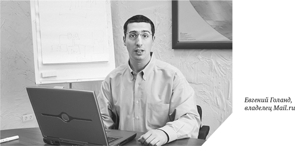 Вторым был Женя Голанд, он с друзьями владел тогда только что основанным русским почтовиком Mail.ru. Этот парень недавно сам вернулся из Нью-Йорка, самоуверенно оперировал миллиардами капитализаций подобных американских компаний и сходу стал называть совсем какие-то несусветные цифры по стоимости своего почтовика. При этом он предлагал купить 5 или 10 % компании, не более.