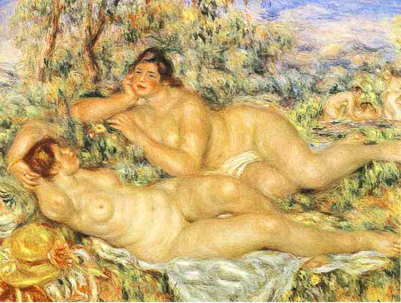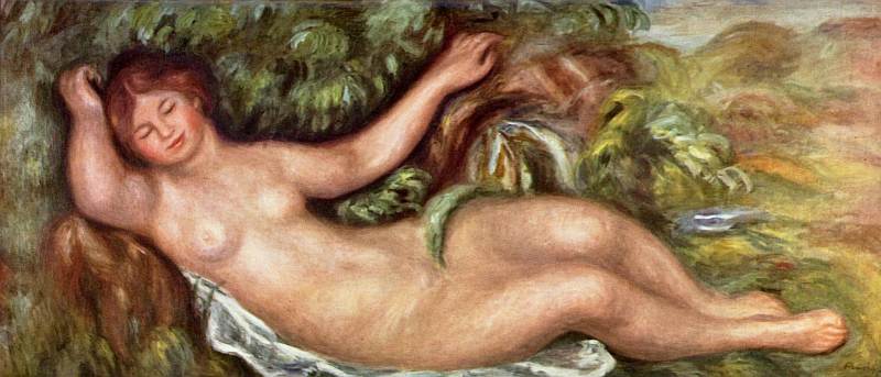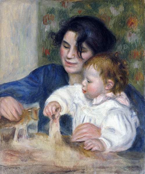 А между тем редели ряды самых близких друзей, боровшихся вместе с ним за утверждение своих идей. В 1894 году умер Гюстав Кайботт, оставив свою коллекцию импрессионистской живописи государству, причем душеприказчиком был назначен Ренуар. Обязанное эта заставила его немало потрудиться, чтобы картины были куплены государством. В результате коллекция бьша частично расположена в Люксембургском музее. Смерть Берты Моризо в 1895 году бьша большой потерей Ренуара, с недоверием относившегося ко всем артистическим и литературным собраниям, за исключением салона Моризо, где всегда можно было встретить очень милых и приятных людей. Через несколько лет после Моризо скончался Альфред Сислей. Но боль от этих утрат была частично компенсирована рождением 15 сентября 1894 года сына Жана, ставшего впоследствии знаменитым режиссером. Чтобы помочь Алин перед родами, из Эссуа приехала ее молоденькая кузина Габриэль и надолго поселилась в доме Ренуара, взяв на себя заботу о детях. Эта девушка, чья кожа, по словам Ренуара, удерживала свет, стала любимой моделью художника, и он часто писал ее в зрелые годы. В 1901 году родился третий сын, Клод, по прозвищу «Коко».