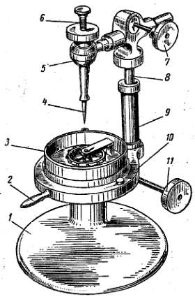 В целях устранения теней исправляемую спиральную пружину необходимо располагать на толстом стекле или тонком стекле с подставкой, с тем чтобы отделить тени от спирали. Очень удобно выполнять операцию правки на матовом стекле, освещенном снизу.