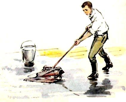 На другой день опять моет, опять спрашивают: — А сегодня за что?