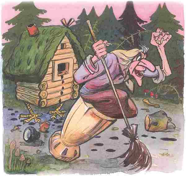 — Кто это тут хозяйничает?! Кто здесь безобразничает?! — закричала она, размахивая помелом.
