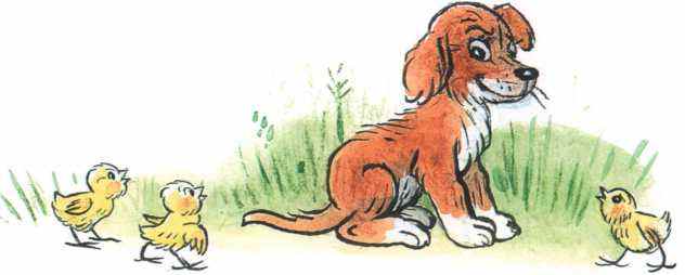 — Ну ладно, — пожалел щенка петух. — Я буду кукарекать, а ты повторяй за мной.