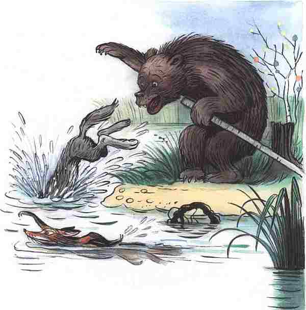 Медведь не долго думал и с разбегу тоже бултыхнулся в воду.