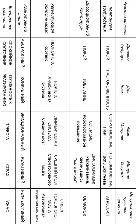 По мере того как степень возбуждения нервной системы ребенка повышается, ответственность за функционирование берут разные области мозга. Чем больше ребенок расстроен или испуган, тем примитивнее его поведение и реакции. Во время этого связанного с психическим состоянием сдвига в когнитивном восприятии чувство времени ребенка изменяется, и сокращается его горизонт планирования будущего. Испуганный ребенок не думает (и не должен думать), что будет в будущем через несколько месяцев — все его внимание сосредоточено на текущей угрожающей ситуации.