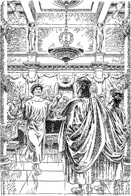 — Ну и голос у этого гладиатора! Ревет, как бык! — бормотал в дремоте Курион, склоняя лысую голову то к правому, то к левому плечу.