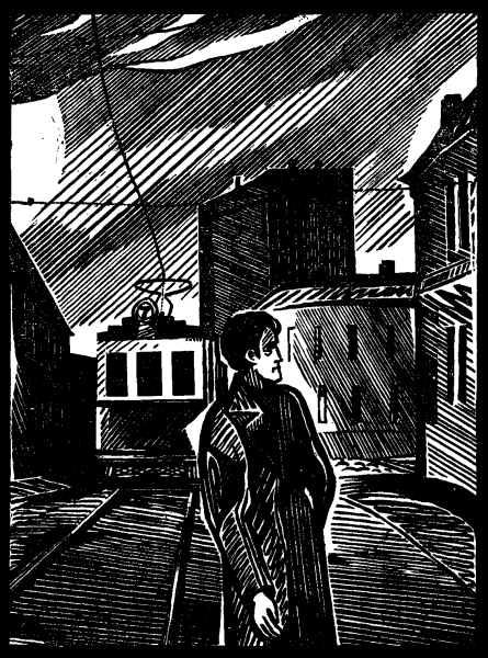 Трамвай скрежещет всеми суставами. Он идет в свой последний рейс — в депо. В углу сидит усталая кондукторша. Женщина средних лет с сухощавым смуглым лицом. Она пересчитывает деньги, складывает пакетиками и прячет их в сумку, которая висит у нее спереди на сыромятном ремешке. Трамвай движется, делая короткие остановки. Уже поздно, пассажиров нет. Трамвай оповещает город о своем ночном рейсе дребезжанием звонка, грохотом колес и визгом тормозов, когда он в последний раз поворачивает на Скулянской рогатке.