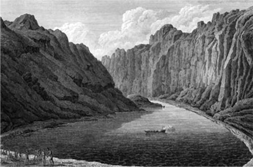 Вид берега около порта Чичагова. Из “Атласа к путешествию вокруг света капитана Крузенштерна”