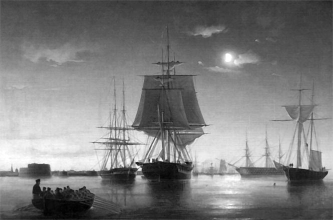 Если бы груз и провизия, также и назначенные в Японию подарки, доставлены были в Кронштадт благовременнее, тогда бы можно было легко расчислить, сколько чего с удобством поместится; но сверх позднего отправления, еще и беспрестанные западные ветры причиняли в привозе вещей из С.-Петербурга немалую остановку. Находясь на рейде целые три недели, могли бы мы иметь довольно времени перегрузить корабль, но ежедневное ожидание посланника учинить того не позволяло; притом предоставлял я себе сделать сие в Копенгагене, где и без того надо было перегружаться, потому что надлежало взять нам 80 оксотов французской водки и поместить на корабле нашем.