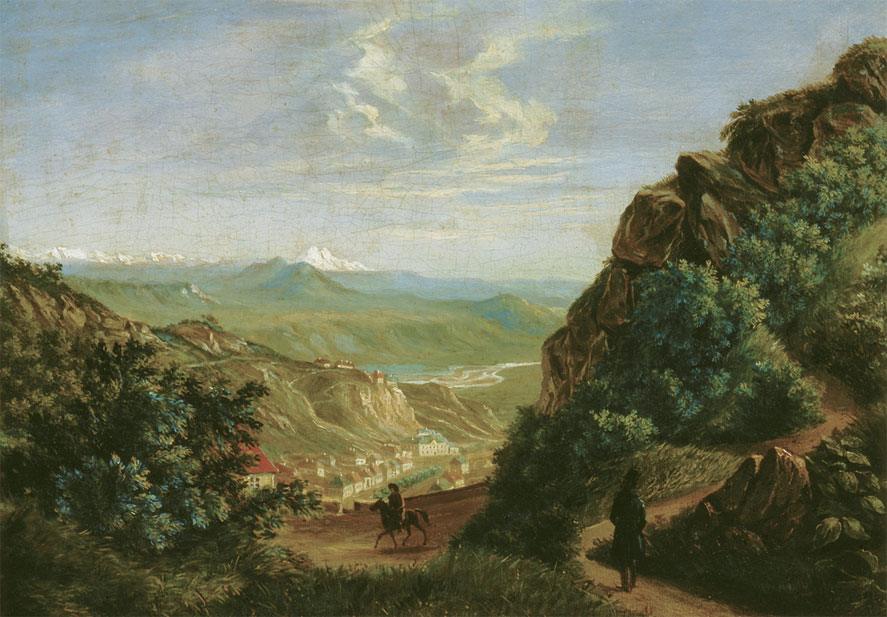 Пятигорск в 1841 году, по рассказу В. И. Чиляева, был маленький, но довольно чистенький и красивый городок. Расположенный в котловине гор, при реке Подкумок, он имел десятка два прихотливо прорезанных в различных направлениях улиц, с двумя-тремя сотнями обывательских, деревянных, большей частью одноэтажных, домиков, между которыми там и сям выдвигались и гордо смотрели солидные каменные казенные постройки, как то: ванны, галереи, гостиницы и др. В центре города, почти у самых минеральных источников, ютился небольшой, но уже хорошо разросшийся и дававший тень бульвар, на котором по вечерам играла музыка. Городок с мая до сентября переполнялся приезжавшей на воды публикой; у источников, в казино и на бульваре появлялась масса больных обоего пола и всех рангов, лет и состояний.