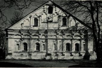 Из позднейших произведений, внесших изменение в интерьер храма, заслуживает внимания резной иконостас (ил. 8). Его проект был составлен калужским архитектором А. Яснишиным. В 1793 г. для исполнения резной и столярной части иконостаса были договорены нежинские мастера — Савва Волощенко и Степан Белопольский, а в 1794 г. подписан контракт на иконописную и позолотную работу со священником города Борзны — Тимофеем Мызко.