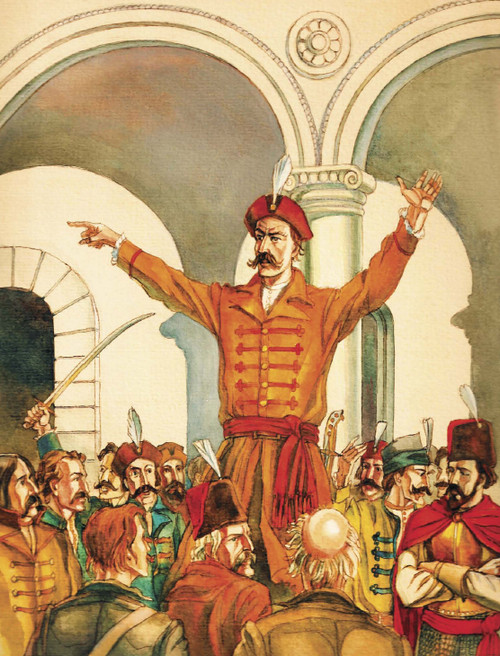 Окружают его приближённые. Среди них изменившие Годуновым князья и бояре Масальские, Татев, Лыков, другие. Предводители пришедших из Речи Посполитой польских конных отрядов. Атаманы примкнувших к самозванцу донских казачьих сотен.