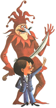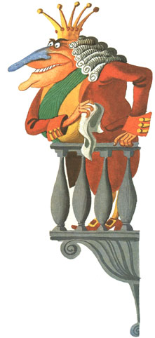 Скоро принцесса устала прыгать и рассказала, что ровно сто дней назад она играла золотым шариком с придворной обезьянкой Макаки. Обезьянка кинула шарик, и он попал прямо в открытый рот принцессы и застрял в горлышке. От этого бедняжка не могла есть и разговаривать, а дышала с трудом. Вы спросите: почему она не написала на бумажке, что с ней произошло? А потому что слово «обезьянка» в Синеносии изучают во втором классе, а слова «золотой шарик» — в третьем. Конечно, принцесса не сумела их написать — ведь она-то была только в первом!