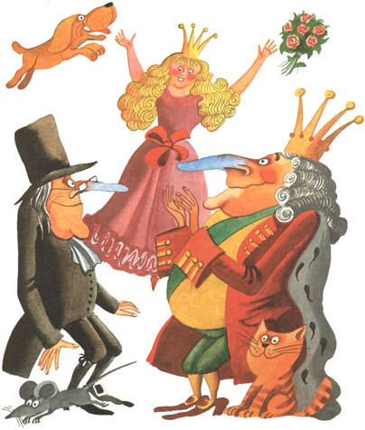 Пока во дворце продолжался весь этот переполох — вы думаете, это муха прожужжала в воздухе, быстренько залезла в Бобкино ухо и там что-то стала рассказывать? Нет, это не муха никакая, а знаменитый Шильдик, умнейшая собака, которая, как известно, умела превращаться в муху очень даже крошечного размера.