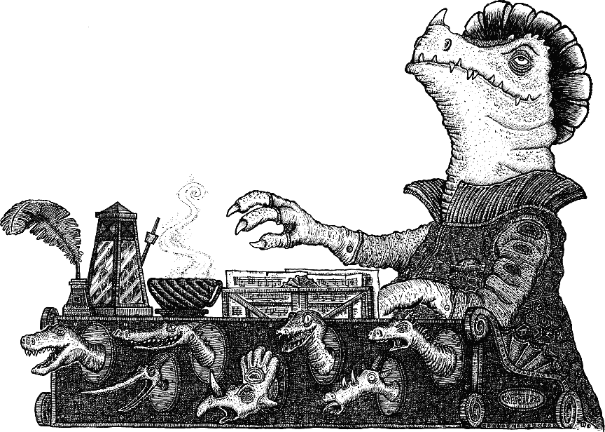 Клаворган – примитивный клавишный инструмент, изготовленный исключительно для обитателей Драконгора. Клавиатура клаворгана состоит из 24 очень широких и массивных клавиш, которые были разработаны специально для трехпалых лап драконов. Клаворган не предназначен для исполнения сложной музыки. – Здесь и далее прим. переводчика В.М.