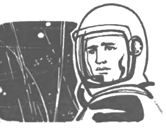 Но вот, преодолев минутное колебание, Батаиов решительно отталкивается от стенки ракеты и, отлетев на некоторое расстояние от нее, повисает в пустоте. Тонкий трос связывает человека с ракетой, но висит свободно, не натягиваясь, — ведь в этом мире тяжести не существует.