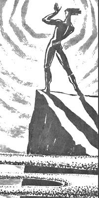 Наар усомнился в учении о Всеобщем Камне. Он спрашивал себя, отчего же днем небо светлое, а по ночам темное, почему всегда меняется его цвет, откуда взялась жизнь в детях Камня. И, мучаясь этими вопросами, он решил взобраться до неба — влезть на Гору Всех Гор, вершина которой, как утверждала наука, украшенных, соединялась наверху со Всеобщим Камнем.