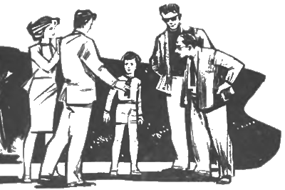 — Я догнал их. Я спросил, кто они. «Из будущего!» — ответили они мне. Я намекнул, что меня ничуть не забавляют их шутки. Они повторили свой ответ. Некоторое время я бежал обескураженный. Они заговорили между собой о каких-то неполадках в управлении. Папа сказал, что Игорь тронул не тот рычаг и их занесло в прошлое время. Мама сказала, что теперь целый год Игорю не доверят такой сложной машины. Мальчик что-то возразил им, он так безбожно уснащал свои объяснения непонятными терминами, что папа сравнил сына с ожившим техническим справочником. Меня это замечание почему-то рассмешило, я фыркнул, они оглянулись на меня и засмеялись. На тротуаре стояла какая-то ребристая блестящая машина. Прохожие любопытствовали, трогали машину руками. Эти трое подбежали к машине, я остановился в пяти метрах от нее. Открыли люк, папа крикнул людям: