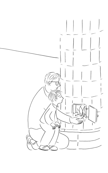 – Давай закроем дверцу, пусть огонь набирает силу! – говорит папа.