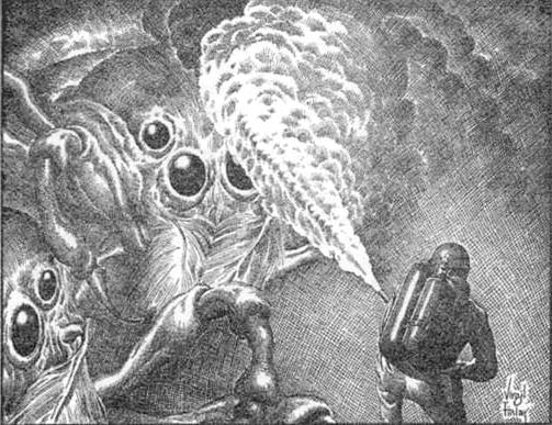 «У Организма нет белых кровяных телец» — сообщил в отчете Сэйлс Штабу, а его мертвый голос произносил слова, уничтожающие меня, в тот самый момент, когда я убил его. — «Считаю, что его можно истребить, если заразить культурой из всех микробов и бактерий, которые получится достать. Велик шанс, что какая-нибудь инфекция сделает свое дело. Если нет, тогда мы должны продолжать, пока не получится. Я бы предложил глубинные бомбы. Тесты, которые я провел, показали, что так называемая вода озера это, фактически, толстая кожа, до сих пор успешно защищающая Организм от попадания обычной инфекции. Глубинные заряды послужат той же цели, что и шприц для подкожного впрыскивания, доставив заразу туда, где она сможет оказать эффект. Там, внизу, под поверхностью, должно быть что-то, что является сердцем опасного существа, которого мы еще и не видели. Но мы обязаны его уничтожить, прежде чем оно мутирует еще дальше, в нечто, с чем уже ничто не сможет справиться».