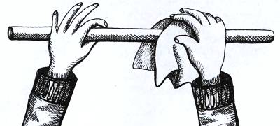Нанесите немного смолы на ткань. Возьмите алюминиевую трубку посередине большим и указательным пальцами левой руки. В правую руку возьмите ткань и сильно потрите ею трубку. Что при этом произойдет?