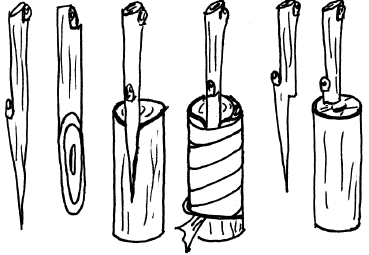 Если черенки очень тонкие, а кора толстая, то можно не делать продольного разреза, а вставлять черенки с помощью специального шила (короотделителя).