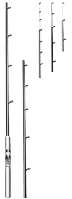 Для данных удилищ в качестве сигнализаторов поклевок применяются сменные кивки – квивертипы (quivertip), имеющие различную жесткость и сгибающиеся до прямого угла при нагрузках от 30 до 170 г, что позволяет применять их при ловле и мелкой плотвы в озерах, и леща на среднем течении рек. Такие кивки-вершинки абсолютно не мешают забросу, хотя постоянно присутствуют на удилищах, не боятся ветра, волн и течения. А так как сам кивок располагается достаточно близко от рыболова то и поклевки с его помощью фиксируются своевременно, тем более, что кончики вершинок окрашены яркими красителями. Более того, этот класс удилищ (рис. 63) позволяет использовать маленькие легкие кормушки (например, модель с закрытыми концами – для опарыша). Преимущество применения кормушки очевидно, так как прикормка всегда оказывается рядом с приманкой. Тем не менее основная роль в ужении с кормушками отводится фидерным удилищам (feeder rods).
