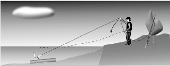 Следующим важным правилом, которое должно обязательно соблюдаться при вываживании достойных трофеев, – это «выкачивание». Рыбу подтягиваем удилищем, а затем, быстро вращая катушку, опускаем вершинку спиннинга вниз. Потом цикл повторяем. Нельзя ни в коем случае крупную рыбу подтягивать к себе вращением катушки! ПОМНИТЕ: удилище служит не только для заброса, нагрузку сопротивляющейся рыбы оно выдерживает намного успешнее, нежели шестерни какой бы то ни было суперкачественной модели катушки. Но подтягивая к себе рыбу удилищем, следует все-таки ПОМНИТЬ: слишком острый угол между леской и комлевой частью бланка недопустим и может привести к поломке последнего (рис. 117). Причем полученная при нерациональном вываживании спиннингом «травма» не обязательно обнаруживает себя сразу. Нормальный производитель, выпускающий удилища, указывает (на чехле или на самом бланке спиннинга) допустимые нагрузки для своего изделия. Обычно обозначается максимально допустимая разрывная нагрузка и лески (например, для лески, выдерживающей не более 8 кг). Это не означает, что таким удилищем нельзя ловить более крупную добычу. Просто, отрегулировав фрикцион под леску, вы тем самым обезопасите свой спиннинг от поломки.