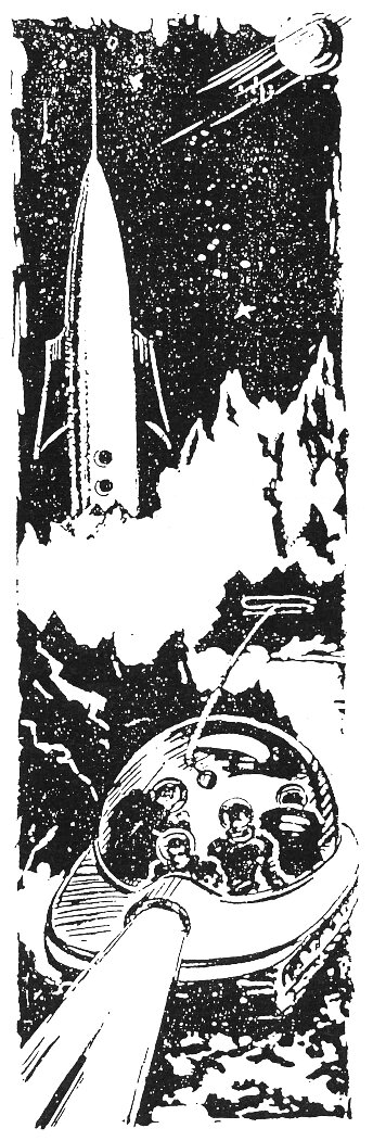 Громкий переливчатый звонок прервал работу, зонд нащупал что-то из заданного ему для фиксации. Все кинулись в ракетоплан к экрану. На приборной доске мигали глазки двух поисковых индикаторов, сообщая, что зонд обнаружил одновременно и растения, и теплокровные живые существа. Верхний правый угол экрана занимало яркое зеленое пятно леса.