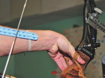 Положение левой руки после выстрела: сама рука осталась на месте, кисть расслаблена и не держит лук