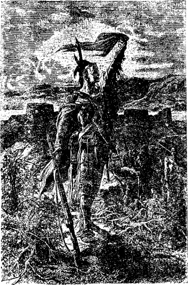 При этом предложении молодой могикан полетел, словно стрела; не успел разведчик договорить свои слова, как с опушки леса раздался его победный крик. Спутники молодого человека тревожно бросились к лесу и увидели другую часть вуали, развевавшуюся на нижней ветви бука.
