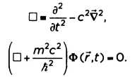 Это и есть уравнение Клейна — Гордона, которое обычно записывается в более точном виде с использованием оператора Д’Аламбера: