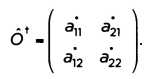 Сопряженный оператор задан матрицей, выстроенной из изначальной матрицы, в которой изменяются строки и столбцы, и каждый элемент заменен комплексно-сопряженным ему элементом. Такая матрица называется сопряженной: