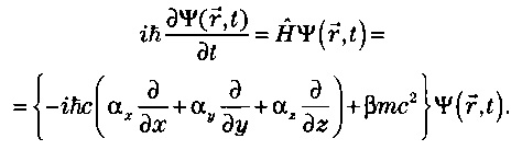 Индексы i,j относятся к любой из трех пространственных составляющих: х, у, z. Коэффициенты Дирак интерпретировал как матрицы. Последнее означало, что волновая функция содержит разные составляющие, помимо своей зависимости от временных и пространственных переменных. Это было новостью. В предыдущем 1927 году Паули уже представил волновую функцию с двумя составляющими, связанными с двумя возможными значениями спина.