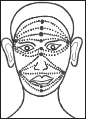 Нажмите большими пальцами на энергетические точки в центре лба. Затем поглаживайте и совершайте круговые движения большими пальцами по лицевым линиям на лбу. Каждую линию заканчивайте небольшим круговым движением.