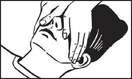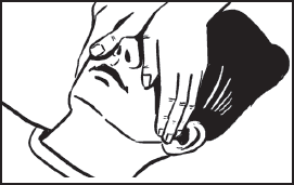 Захватите указательным и большим пальцами кожу на подбородке и, слегка пощипывая, двигайтесь к мочкам ушей.