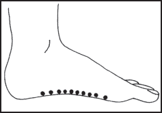 Одновременно надавливая большими пальцами, вы можете теперь обработать точки на линии вдоль внутреннего изгиба стопы от пятки до кончиков пальцев – они представляют собой рефлекторные точки позвоночника.