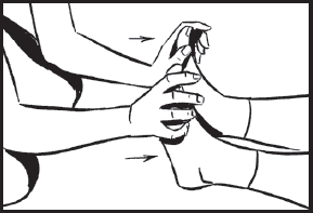 Обхватите поверхностью ладоней стопы партнера за подушечки и пальцы и мягко двигайте их в направлении центра тела. Повторите упражнение несколько раз, чтобы возникло ритмичное и слегка пружинящее движение.