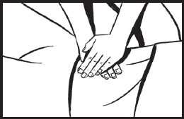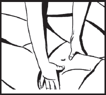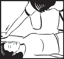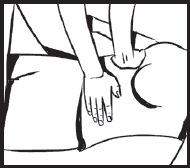 Вокруг пупка находятся шесть важных акупрессурных точек внутренних органов. Обрабатывайте одновременно, сильно надавливая большим пальцем, по две находящиеся рядом точки. При этом кончики ваших больших пальцев должны смотреть друг на друга. При выдохе партнера надавливайте, при вдохе – отпускайте. Если вы будете надавливать в течение нескольких секунд, то попросите партнера спокойно продолжать дышать. В заключение расслабьте живот круговыми поглаживающими движениями.