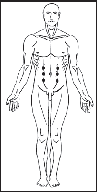 Чтобы вам легче было сориентироваться, точки находятся друг над другом на расстоянии примерно ширины большого пальца параллельно слева и справа от пупка на расстоянии примерно ширины двух больших пальцев.