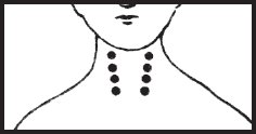 Думаю, что многим знакомо состояние, когда по утрам отмечается тяжесть в голове, недомогание, плохое настроение, несдержанность. Причиной является застой венозной крови в области головы. Проблему можно легко устранить, стимулируя приток крови с помощью шиацу. Надавите на область макушки (рис. 16) – голова слегка прояснится. Затем «подушечкой» большого пальца слегка надавите сначала на правую сонную артерию, затем на левую по нескольку раз (рис. 17). Надавливание начинайте от нижней челюсти, постепенно спускаясь к ключице. Воздействие на эти точки способствует расширению кровеносных сосудов, притоку к мозгу свежей крови и, следовательно, улучшению самочувствия.