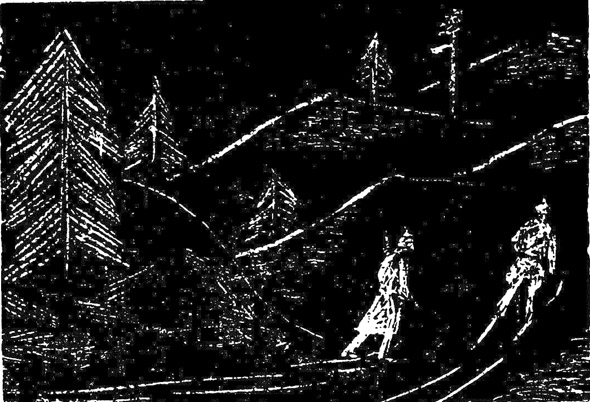 Но зверь прятался от людей. Должно быть откуда-то из чащи за ними следили десятки настороженных, боязливых или злобных глаз. Пусть себе смотрят! Люди не боялись ничего. У них были карабины, и у Чохова — наган, а у Лагунова — топор. Пусть смотрят, как идут двое: шаг — вдох, два — выдох, и только снег поскрипывает под лыжами.