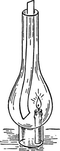 Поставьте ламповое стекло на горящую свечку. Она быстро погаснет. Свежий воздух к ней не поступает. Горячий воздух с продуктами горения устремляется вверх, а свежему воздуху пройти негде. Но если вы в ламповое стекло вставите полоску из плотной бумаги, она разделит внутреннее пространство на две половины: в той, где находится свеча, горячий воздух с продуктами горения по-прежнему будет идти вверх, а свежий, более холодный воздух будет притекать к свече сверху — по другую сторону перегородки.