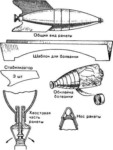 Кроме этих основных материалов, следует запастись деревянной палкой или бруском для изготовления болванки для формовки ракеты, нитками, резиновой трубкой, резиновой губкой, древесными опилками, нитрокраской и некоторыми другими материалами, которые будут названы при описании изготовления ракеты.