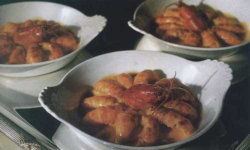Удалите у раков внутренности и отварите их в классическом «кур-буйоне» в течение 5 минут. Освободите хвосты раков от панциря и красиво разложите их в 4 небольшие белые фарфоровые формочки для запекания.