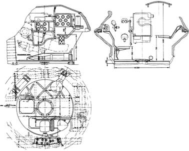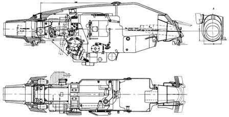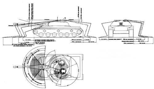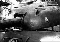 Прицел-дальномер ТПДС состоял из бинокулярного перископического прицела с дальномерной ветвью, обслуживаемой правым окуляром, и дальномерной трубы с базой 1100 мм. Он позволял производить замер дальности с места и сходу при скорости движения танка 10-15 км/ч по движущимся и неподвижным целям на дистанции до 2 км 121* . Прицел-дальномер устанавливался слева от пушки, крепился в специальном кронштейне и был связан с ней нерасстраивающимся параллелограммным приводом, располагавшимся на левой стороне люльки. Головная часть прицела выходила в вертикальный вырез (шахту) башни. Базовая труба ТПДС размещалась внутри башни в верхней зоне ее лобовой части, над пушкой, и крепилась на двух двухплечих рычагах, смонтированных на вращающемся вале, параллельном оси трубы. Выходное окно – амбразура правой головки базовой трубы – находилось в правой верхней зоне лобовой части башни. Для очистки защитных стекол прицела-дальномера и базовой трубы от грязи и снега служили дворники (щетки) с ручным приводом.
